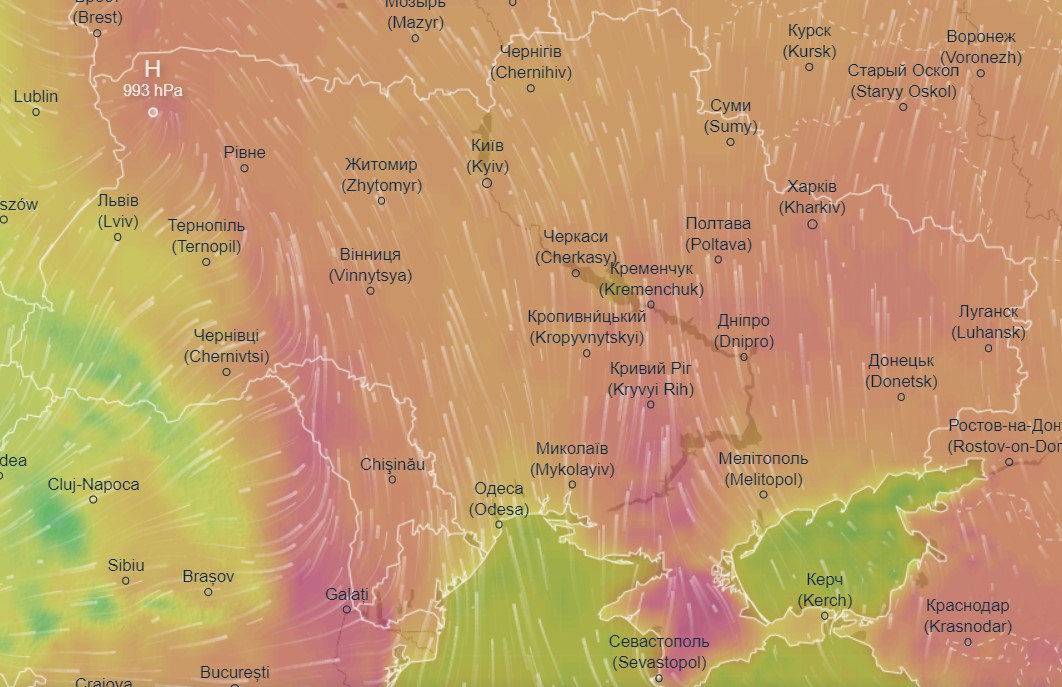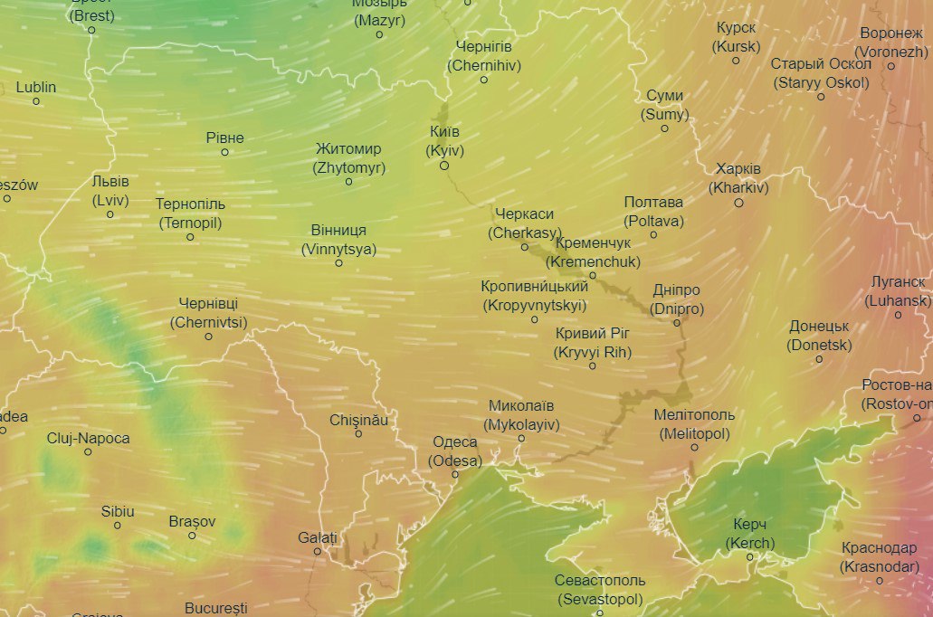 Об этом свидетельствуют данные тематического портала Ventusky.