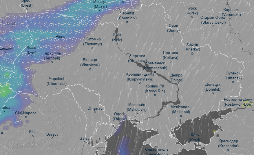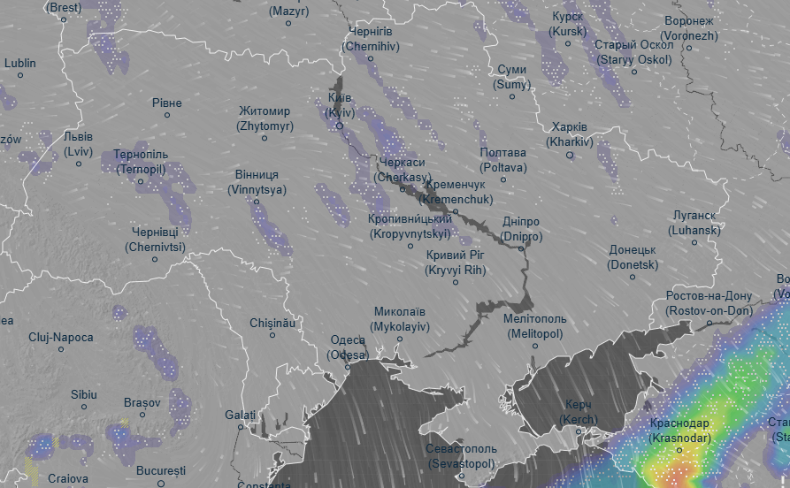 Об этом свидетельствуют данные метеоресурса Ventusky.