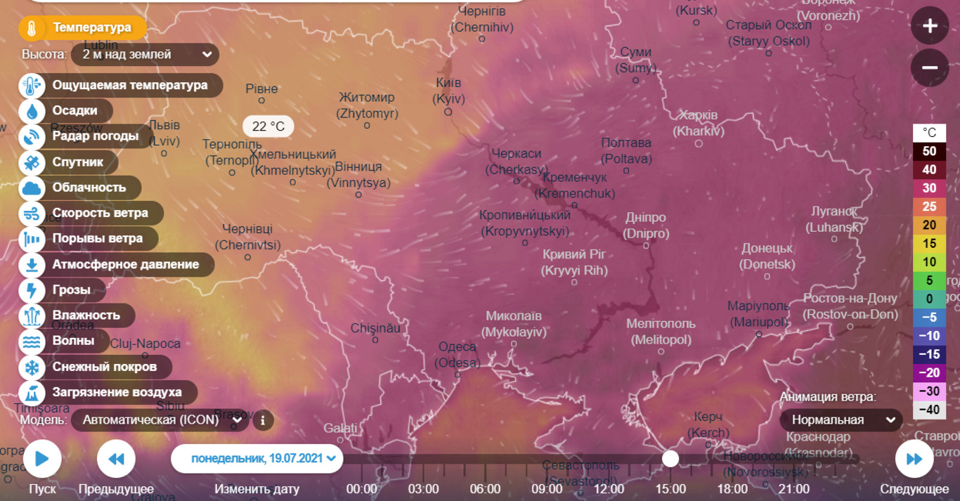 В понедельник, 19 июля, аномальная жара в Украине сменится резким похолоданием, которое зайдет в страну с запада и будет продвигаться к восточным границам.