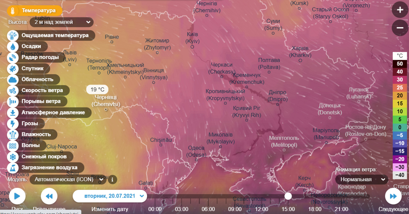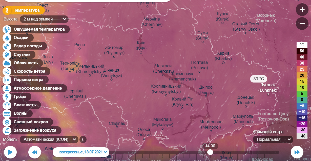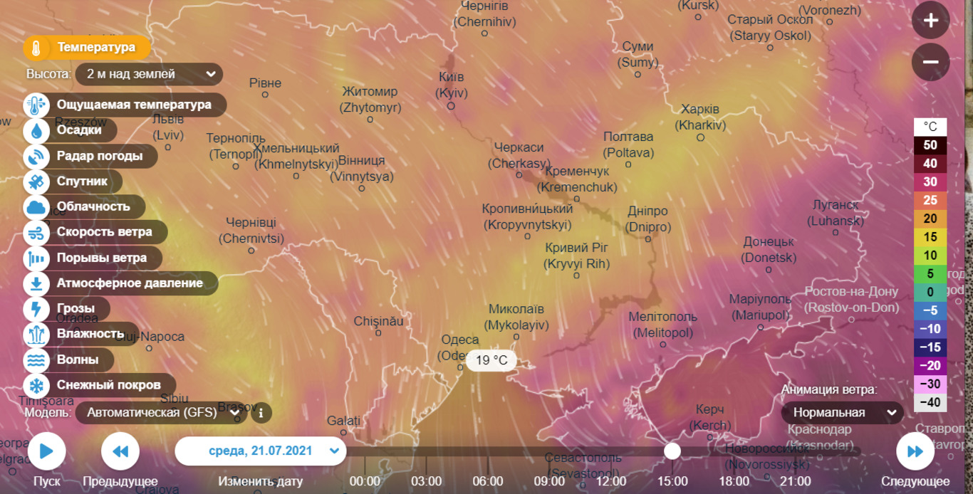 В среду, 21 июля, под властью жары останутся лишь Донецк и Луганск - дневная температура там составит +31. Вместе с тем в Днепропетровской и Харьковской областях воздух не прогреется выше +25 градусов, в Полтаве ожидается +17.