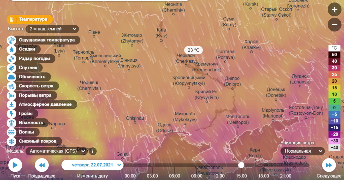 В четверг, 22 июля, даже на крайнем востоке страны термометры покажут не больше +27 градусов. В прикарпатских регионах - ожидается +18, на остальной территории от +20 до +25 градусов.