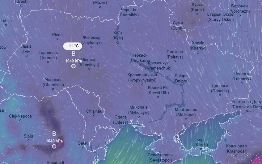 В субботу, 22 февраля, ночные показатели температуры будут ниже нормы - ожидается от -7 до -13 градусов. Чуть теплее будет в Черкасской и Кировоградской области, где синоптики прогнозируют до -7 градусов, на остальной территории Украины - -12...-13 градусов.