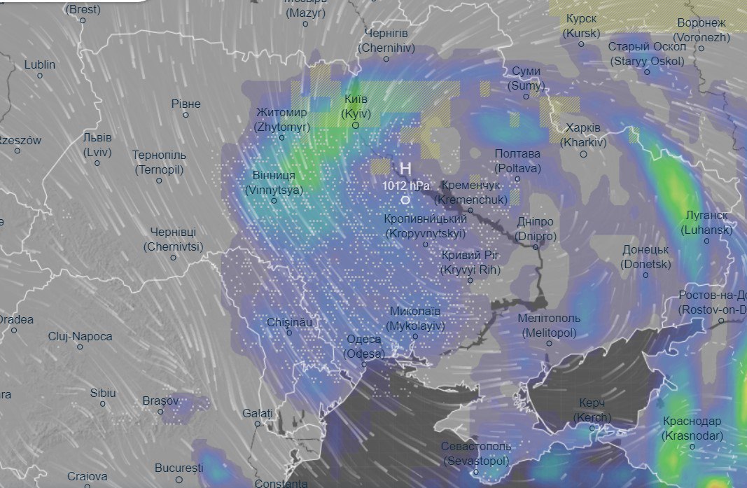 Согласно погодной карте, осадков можно ожидать 5-6 марта. Вечером 5 марта снег также стоит ожидать в Херсонской, Днепропетровской, Полтавской и Сумской области. Они также накроют центральные и северо-восточные области страны, в частности это Киевская, Житомирская, Черниговская и частично Винницкая области.