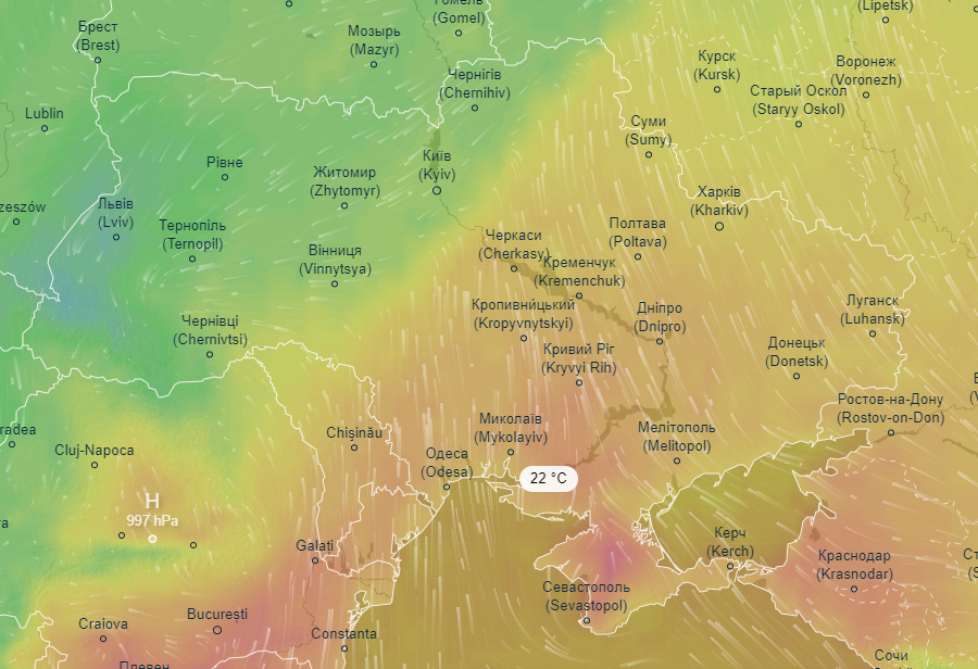 Теплый атмосферный фронт накроет большую часть Украины, кроме западных областей. В четверг, 31 октября, ожидается до +22 в Николаеве, до +20 – в Одессе, Кривом Роге, на несколько градусов ниже будет в Днепре, Кропивницком и Полтаве.