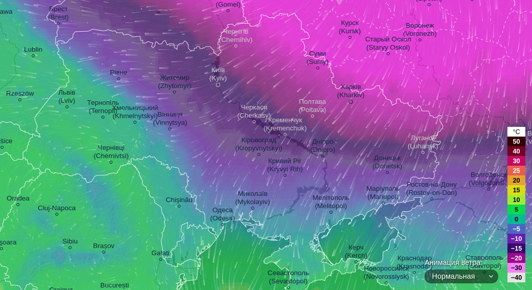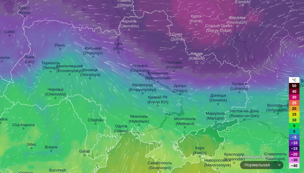 Об этом свидетельствуют данные метеосайта Ventusky.