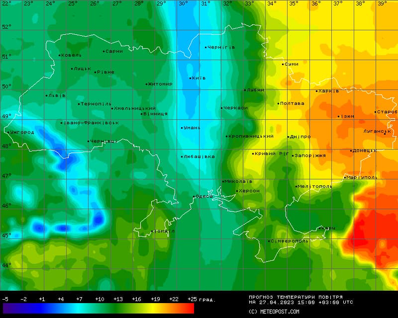 Днем холоднее всего будет вдоль полосы Черниговщина-Киевщина-Черкащина-Кропивницкий-Одесщина – там термометры покажут максимально +9+12 градусов. На западе днем температура воздуха будет +10+13 градусов, на востоке – +17+22 градуса, в центральных областях – +15+20, в Винницкой области – +10 градусов, в южной части – +15+20, в частности, в Одесской области +12 градусов.