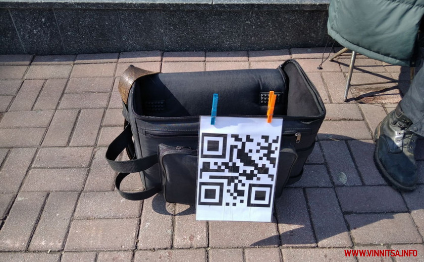 Уличный музыкант в городе Виннице оформил и напечатал банковский QR-код, чтобы прохожие, у которых нет наличных, могли отблагодарить его за игру с помощью смартфона.