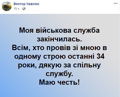 Министр обороны Андрей Таран отправил в запас полковника Вооруженных сил Украины Виктора Кевлюка, который имел опыт сотрудничества с НАТО и был в АТО.
