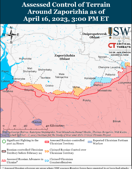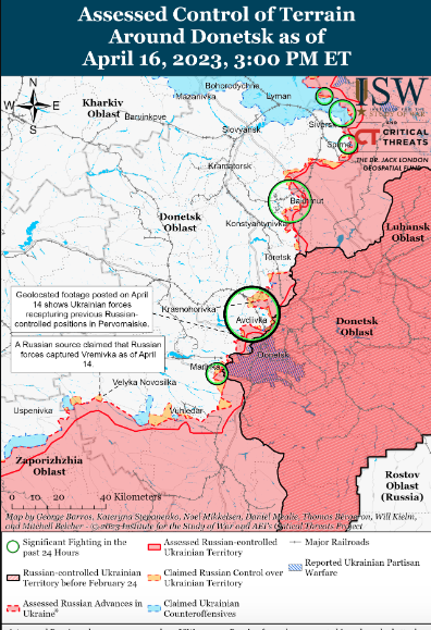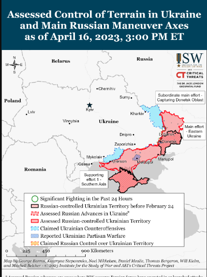 Кроме того, аналитики сделали такие ключевые выводы по ситуации в Украине за 16 апреля 2023 года:
