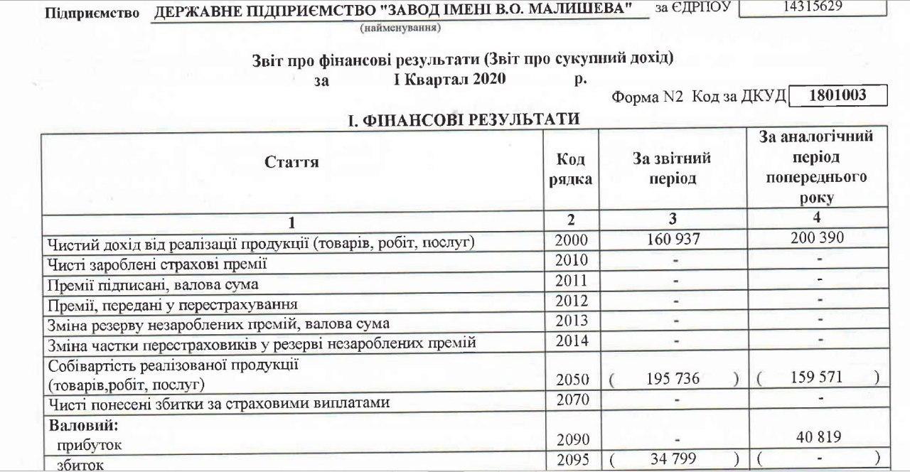 Как свидетельствуют цифры, чистый доход от реализации продукции в 1 квартале 2020 составил всего 160 миллионов 937 тысяч гривен. За соответствующий период прошлого года важнейшее предприятие Укроборонпрома заработало значительно больше - 200 миллионов 390 тысяч гривен.