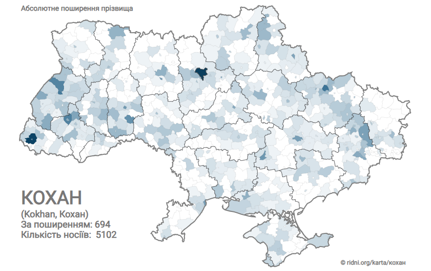 Чаще всего она встречается в Приднепровье. Тальновский район Черкасской области является самым густым центром этой фамилии, где на одного носителя приходится 127 жителей.