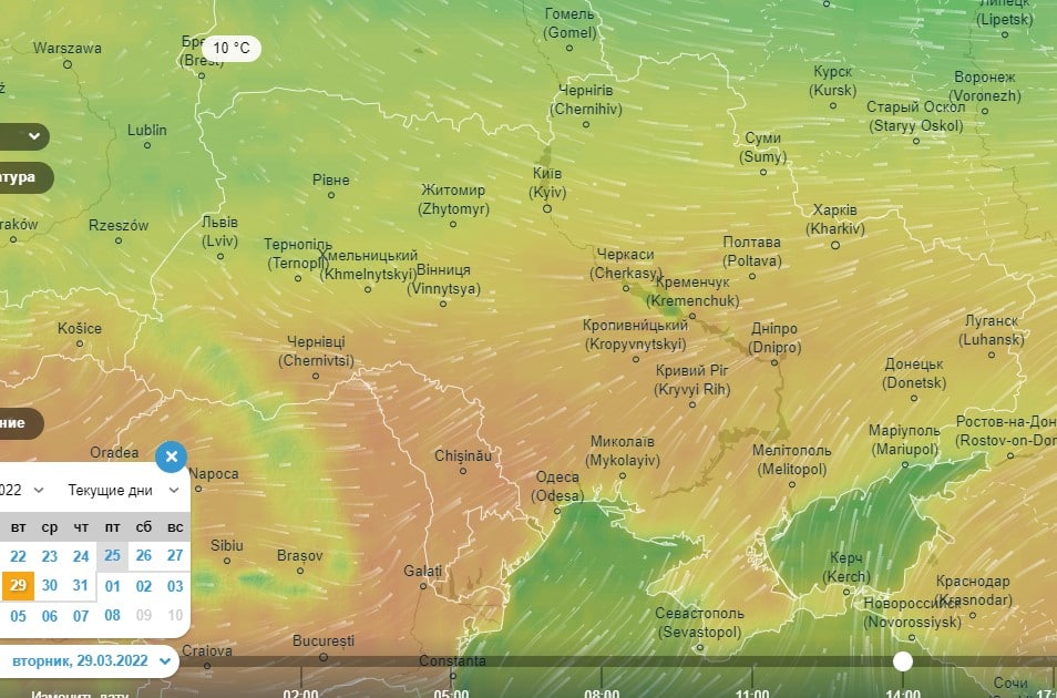 Об этом свидетельствуют данные с тематического сайта Ventusky.