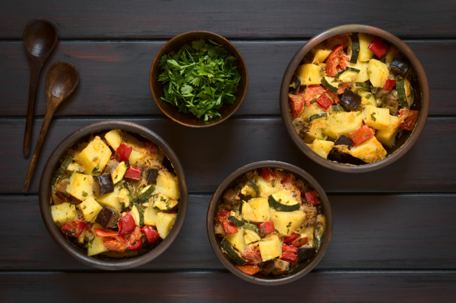 Постное рагу из кабачков, баклажанов и картофеля в мультиварке