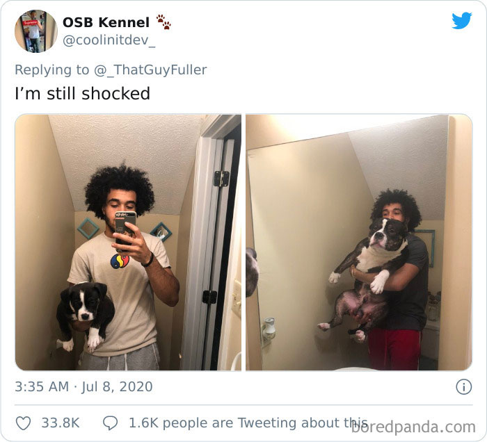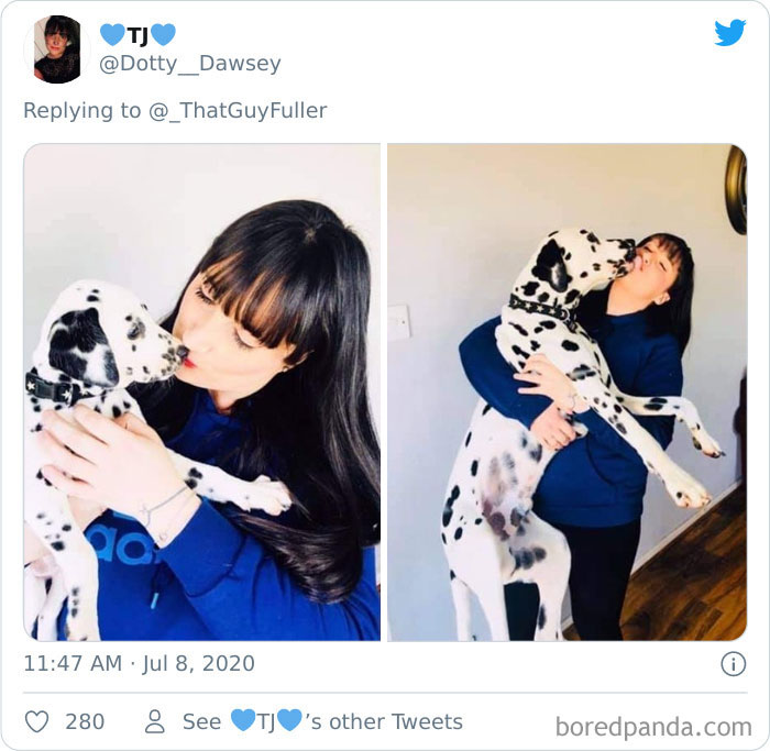 У этого поста появились многочисленные последователи. Уже несколько десятков владельцев собак опубликовали похожие селфи со своими питомцами.