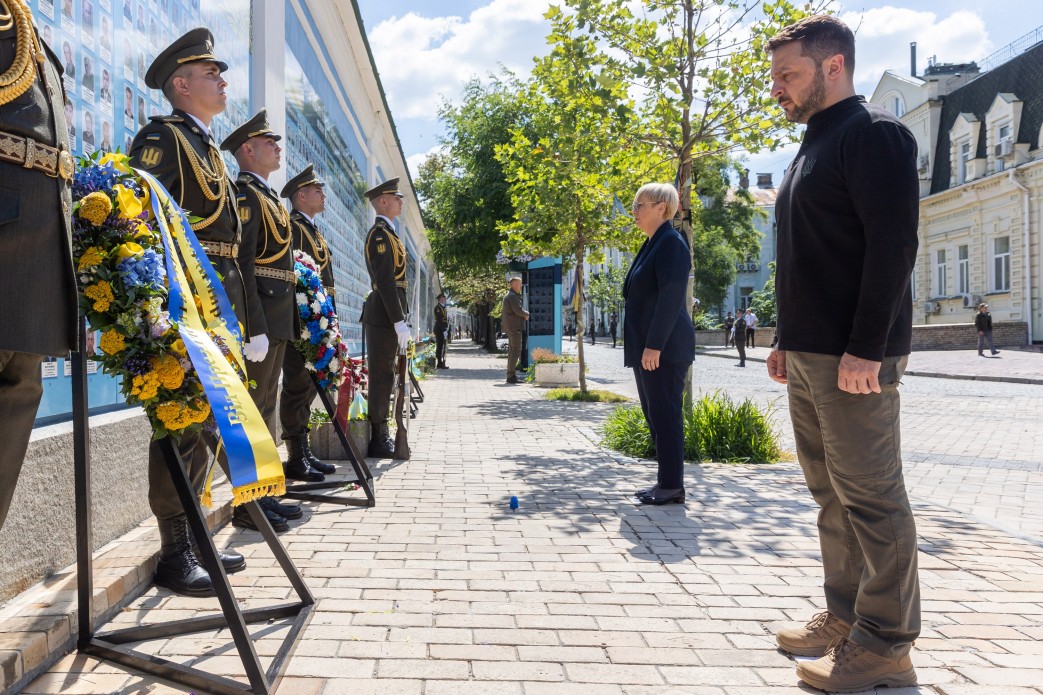 Президент Украины Владимир Зеленский и президент Словении Наташа Пирц Мусар почтили память защитников и защитниц, которые положили свою жизнь во время защиты нашей страны.