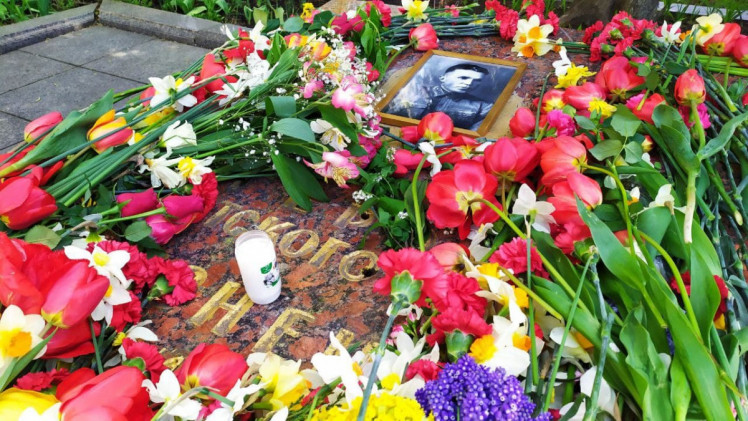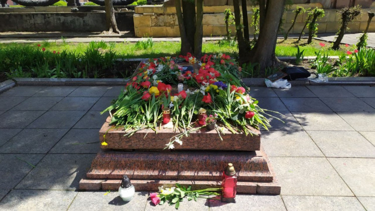 На могилу советского диверсанта, агента НКВД, "партизана", "разведчика" Николая Кузнецова в День Победы над нацизмом во Второй мировой войне, 9 мая, во Львове жители положили больше цветов, чем на любую другую на Холме Славы.