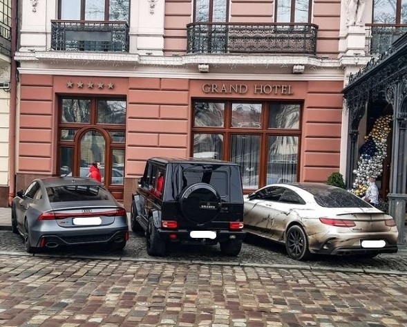 Вчера, 19 декабря, на одной из парковок во Львове в объектив камер попали три роскошных автомобиля, которые стояли около пятизвездочного Grand Hotel.