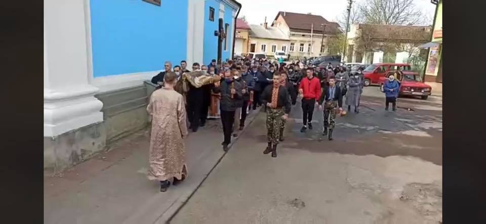 В пятницу, 17 апреля, в Самборе Львовской области, вопреки карантинным ограничением священнослужитель провел крестный ход.