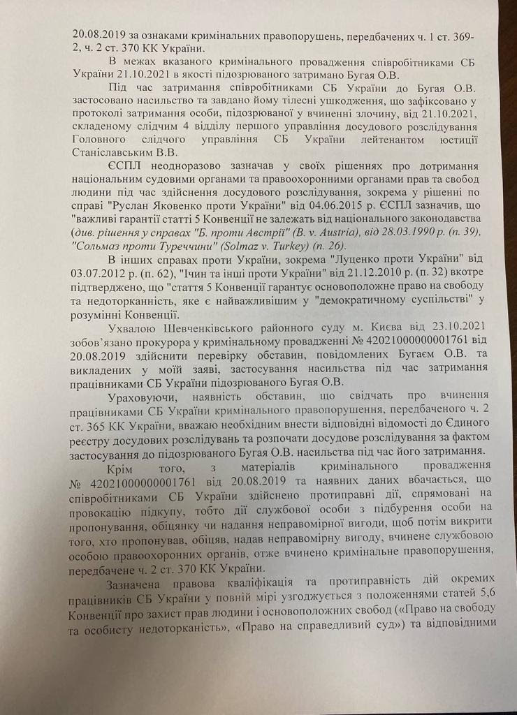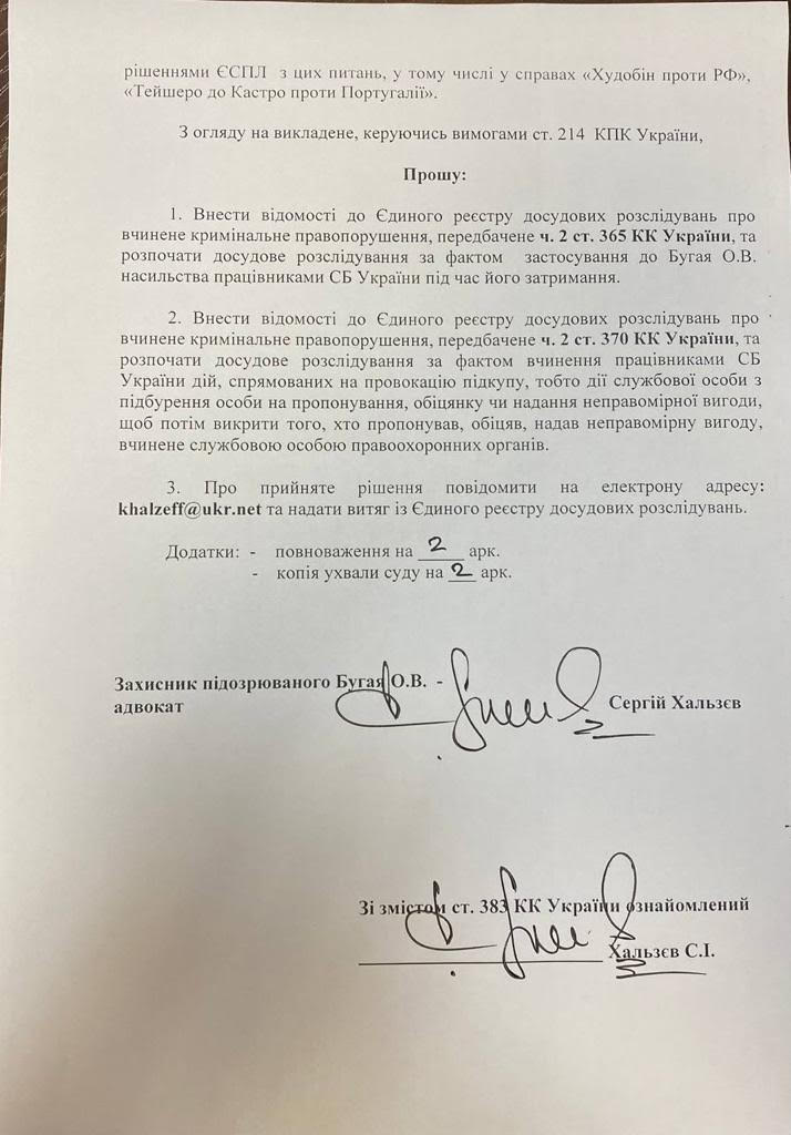 "Во время задержания сотрудники СБУ применили насилие к Бугаю и нанесли ему телесные повреждения", – говорится в обращении.