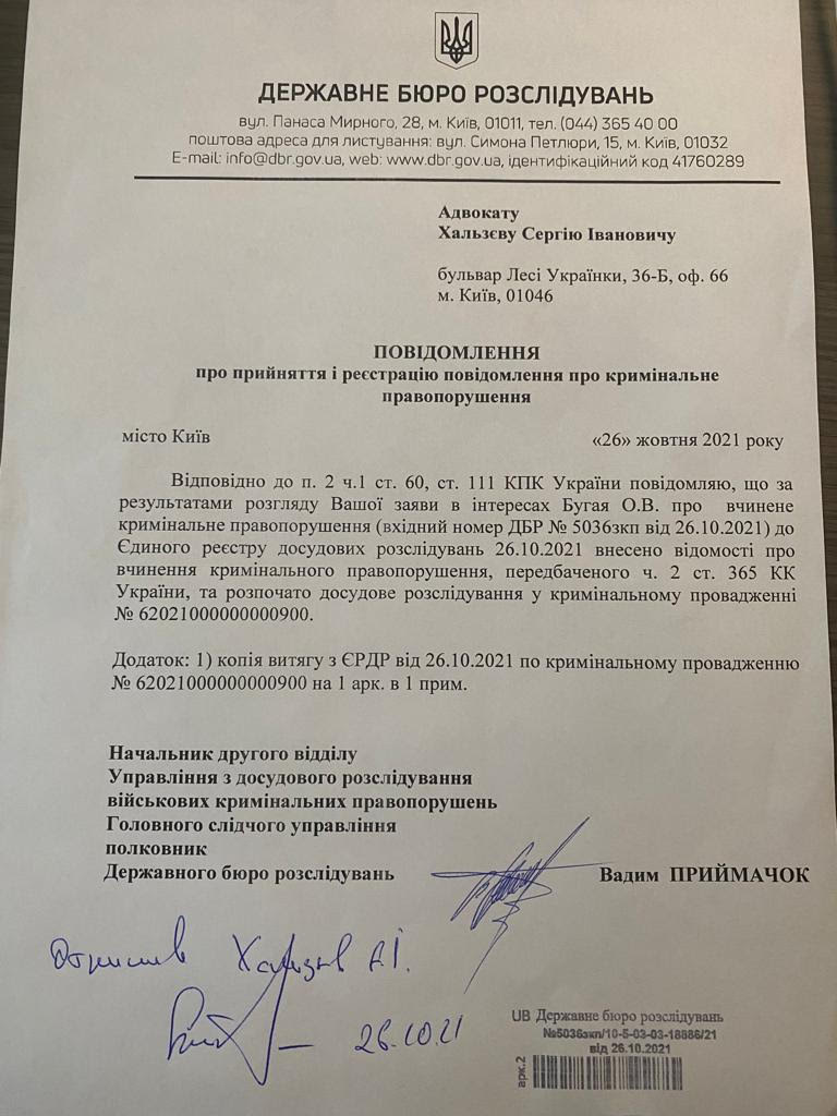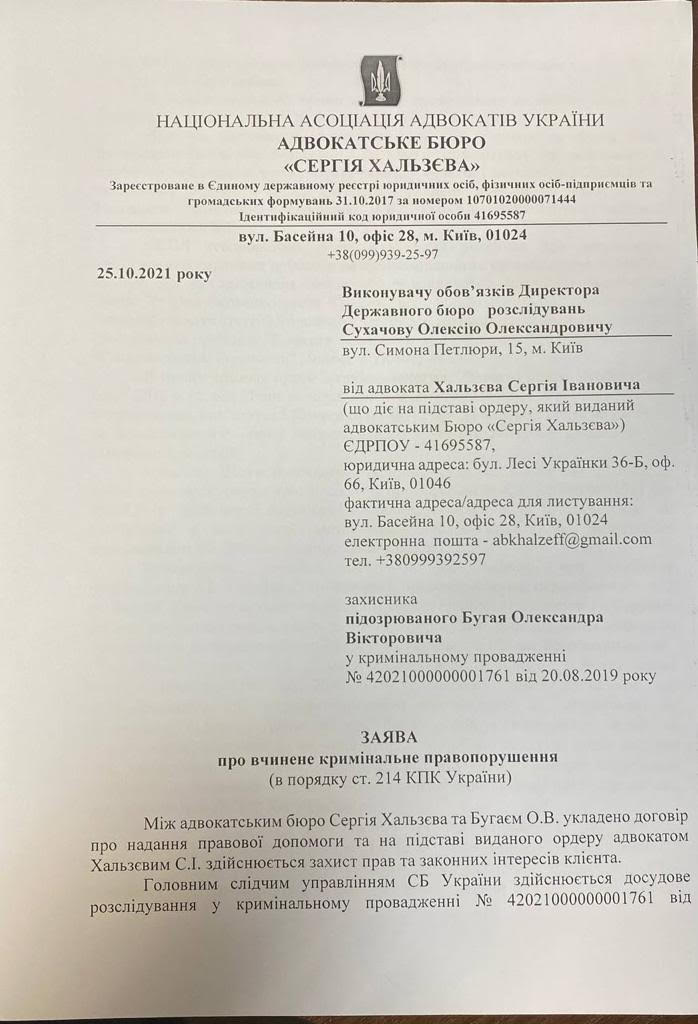 Об этом пишет УНН со ссылкой на обращение адвоката Сергея Хальзева к и.о. директора ГБР Алексею Сухачову.