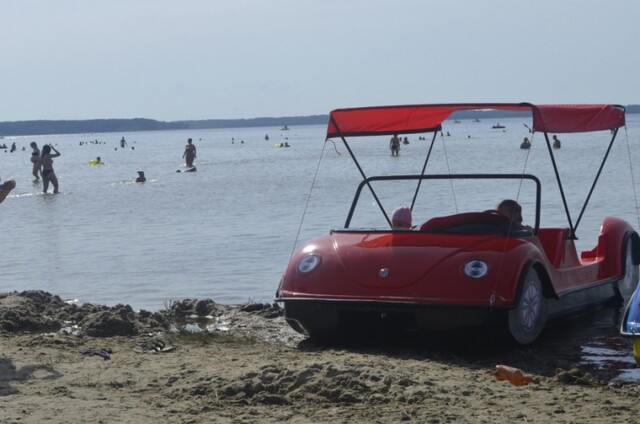 Также тут активно сдают на прокаты новенькие катамараны, которые выглядят довольно оригинально - в виде автомобилей на воде.