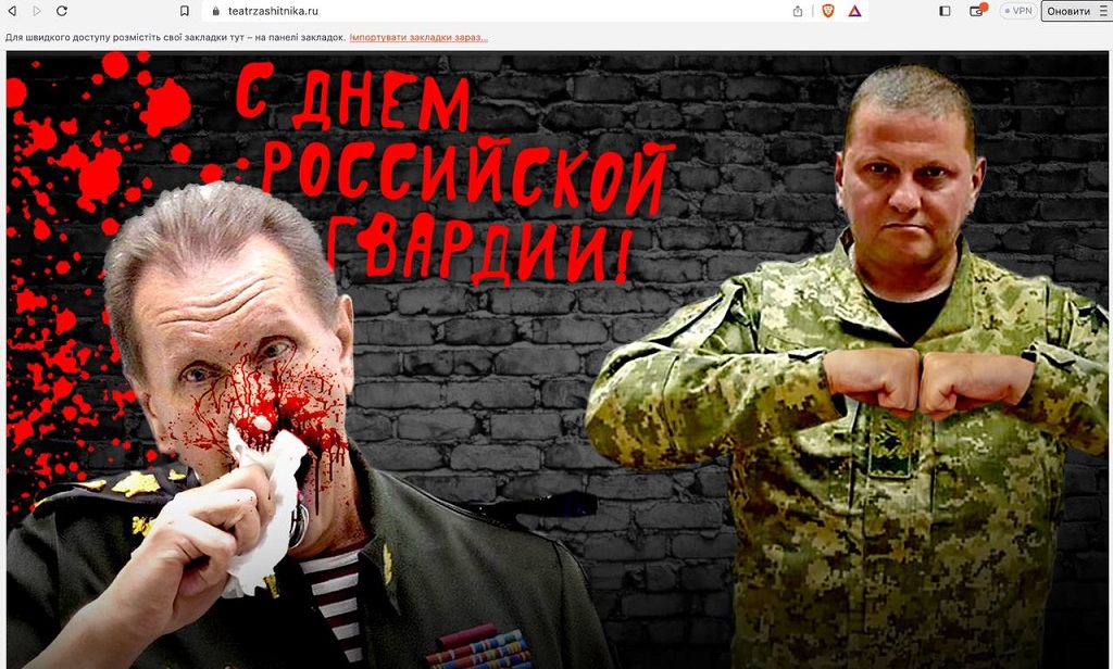 На сайтах таких 17 компаний РФ появились изображения, где стоит окровавленный Золотов и уверенный в себе Залужный.