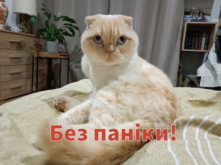 "Что делать? Ничего нового. Тревога - топ-топ в укрытие. Коньяк и шоколадку - с собой. Сами все знаете. Короче, без паники. Но и расслабляться -слишком не стоит - война идет... А на фото - мой кот Бейлиз. Видите, насколько ему п***й? Что мы говорим нашим врагам? н***й!" Е***м дальше. Mordor must die", - резюмировал Василий Мулик.