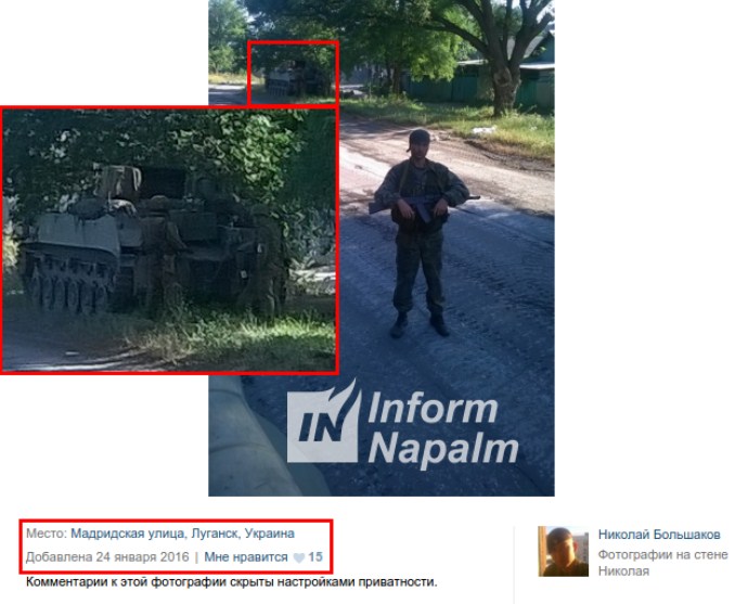 В Informnapalm заметили интересный момент, который хорошо характеризует подготовку российских военных, воевавших против Украины на Донбассе - морской пехотинец Большаков просто забыл снять геотеги на одном из своих фото.