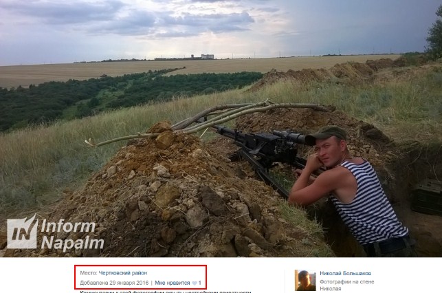 Так, указывается, что российский военный сам опубликовал в социальных сетях фотографии с Донбасса, а также с места его срочной службы в с. Спутник в Мурманской области, РФ. Отмечается, что фотодоказательство датировано 2 марта 2016.