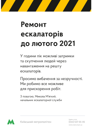 С 18 февраля начинаются работы по ремонту эскалаторов на станции "Майдан Незалежности", которые продлятся до февраля 2021 года.