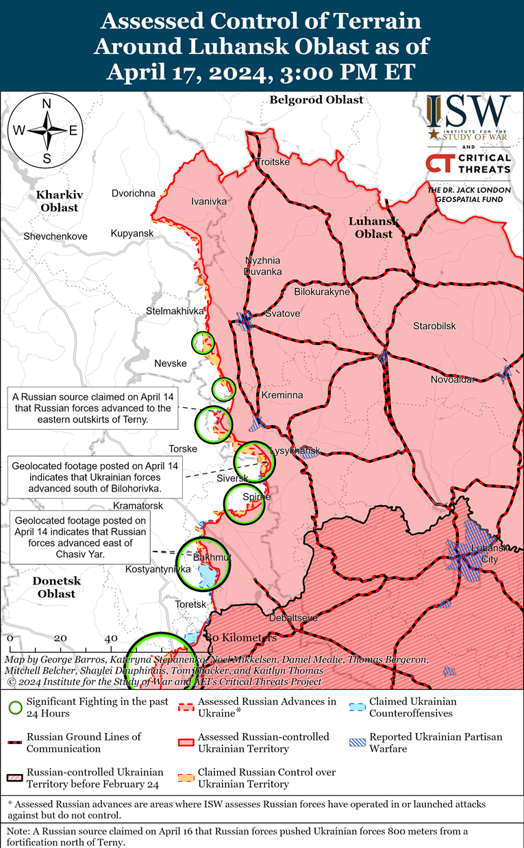 Российские войска усилили темп и масштабы механизированных наступлений по всей Донецкой области в марте и апреле 2024 года, однако не сделали этого на северо-восток от Бахмута в Северском направлении.