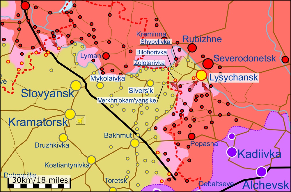 В субботу, 2 июля, российские оккупанты захватили населенный пункт Шипиловка в Попаснянском районе Луганской области. Противник продолжает наступление на север и запад от Лисичанска.