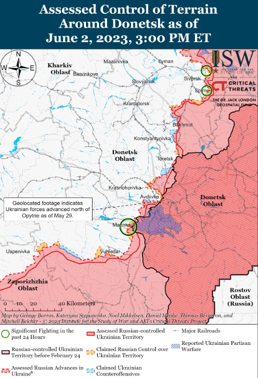 В то же время российский источник утверждал, что 2 июня ВСУ "приобрели территориальные достижения" во время ограниченных контратак на западе Донецкой области, а именно во Владимировке.