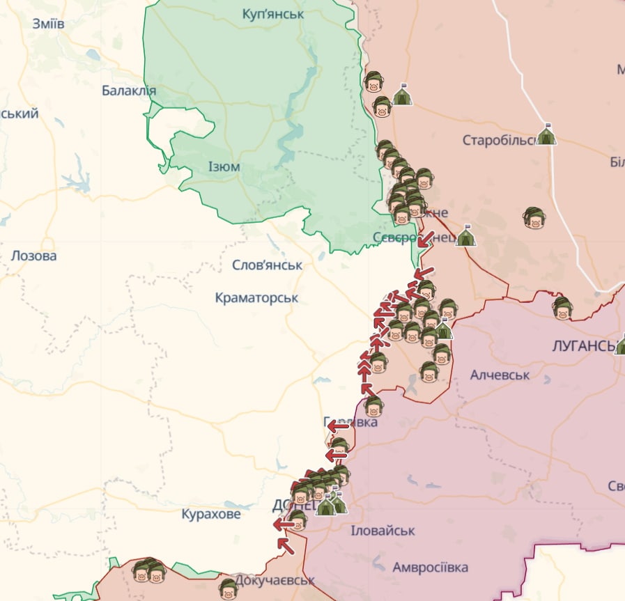 - На Купянском направлении – районы Первомайского и Ивановки на Харьковщине и Стельмаховки и Мясожаровки на Луганщине.