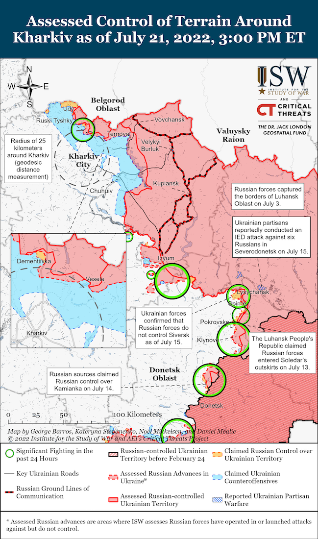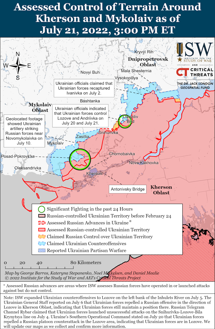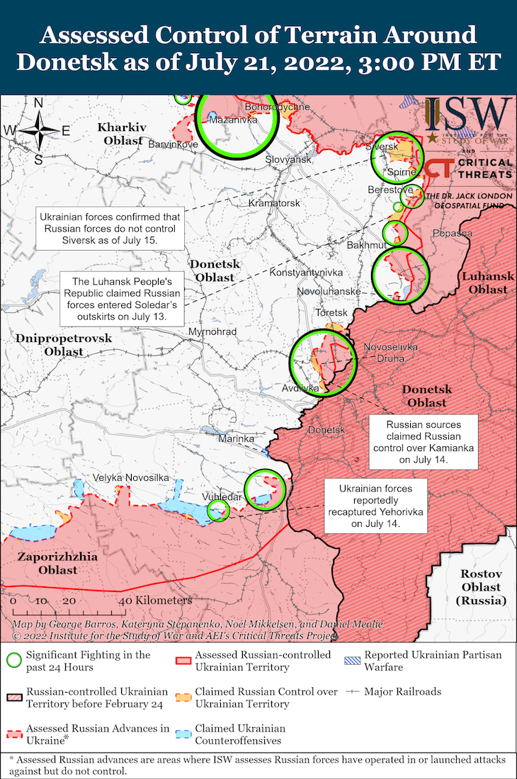 О ситуации на фронте по состоянию на 22 июля сообщили аналитики Института изучения войны (ISW).