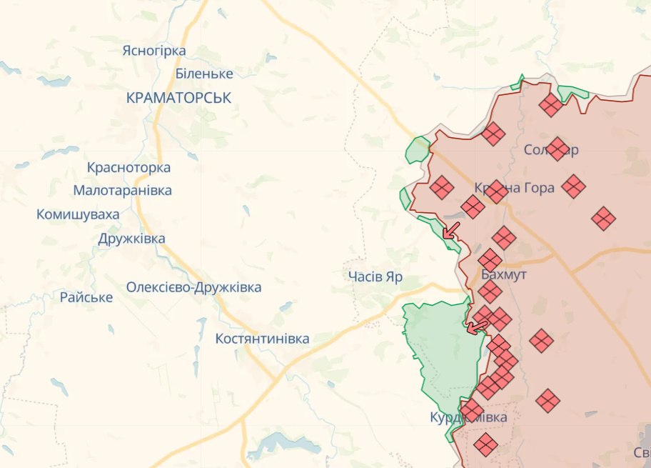 На Бахмутском направлении рашисты, при поддержке авиации, вели штурм украинских позиций в районах Клещиевки, Андреевки и восточнее Северного Донетчины, где ВСУ отразили семь атак. Также оккупанты нанесли авиационных ударов в районах Богдановки, Клещиевки, Торецка, Северного Донетчины. Под артиллерийским и минометным огнем оказались около 10 населенных пунктов области, среди которых Богдановка, Ивановское, Клещиевка, Нью-Йорк.