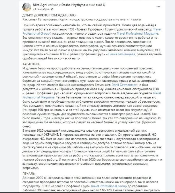Кроме того, есть подтвержденная информация, что семейная компания Гетманцевых получила карантинную помощь для бизнеса от государства. Однако, несмотря на это, TPG не только не сохранила штат сотрудников, но даже не выплатила уволенным заработную плату.