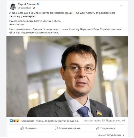 Глава парламентского комитета по вопросам финансов, налоговой и таможенной политики Даниил Гетманцев покрывает налоговые махинации и нарушения трудового законодательства в фирме, которая принадлежит его матери Елене Гетманцевой.