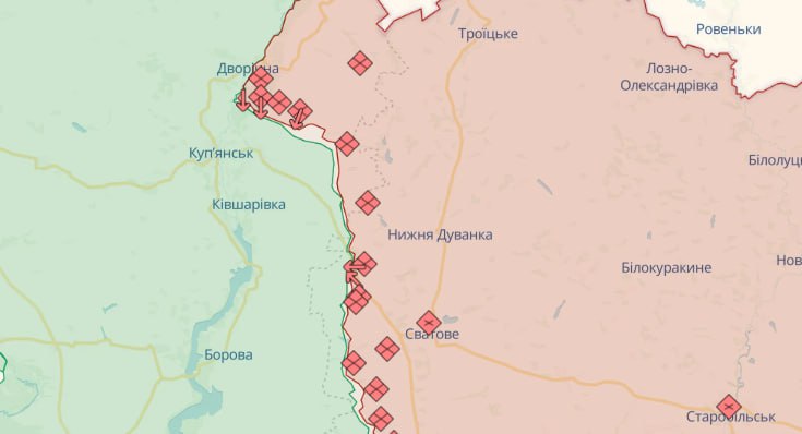 На Купянском направлении противник вел безуспешные наступательные действия в районе Новоегоровки Луганской области. Нанес авиационные удары в районах Шейкивкм Харьковской области и Твердохлебового Луганской области. Артиллерийским и минометным обстрелам противника подверглись населенные пункты Двуречная, Кисловка, Котляровка, Табаевка, Крахмальное, Песчаное Харьковской области.