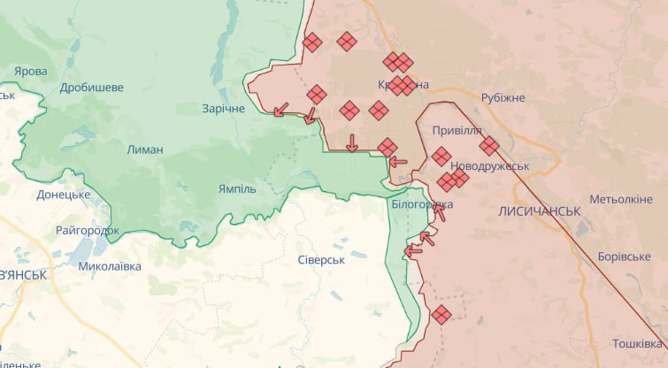 На Лиманском направлении артиллерийским обстрелам противника подверглись более 30 населенных пунктов, в частности Невское, Белогоровка Луганской области и Выемка, Звановка, Раздолевка, Федоровка Донецкой области.