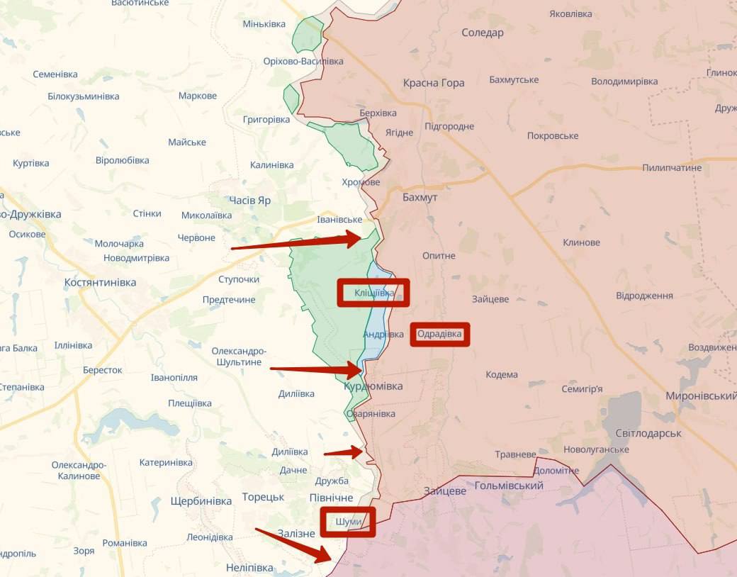 Противник не оставляет идеи отбить утраченные позиции вблизи Клищиевки и Андреевки, постоянно штурмуя и нанося огневые удары по позициям украинских защитников.