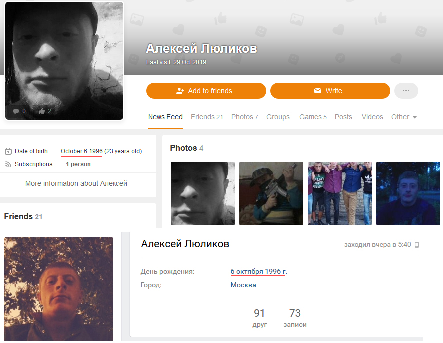 Известно, что Люликов Алексей Алексеевич родился 6 октября 1996 года. Сам мужчина с Москвы. В сети есть его фото, а пользователи пишут, что он был в так называемом "6-ом полку".