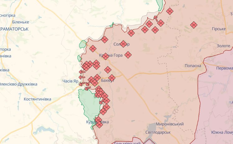 На Бахмутском направлении нашими воинами отражено 23 атаки в районах населенных пунктов Белогоровка Луганской области; Выемка, Роздоловка, Часов Яр, Клещеевка Донецкой области, где враг пытался выбить наши подразделения из занимаемых рубежей.