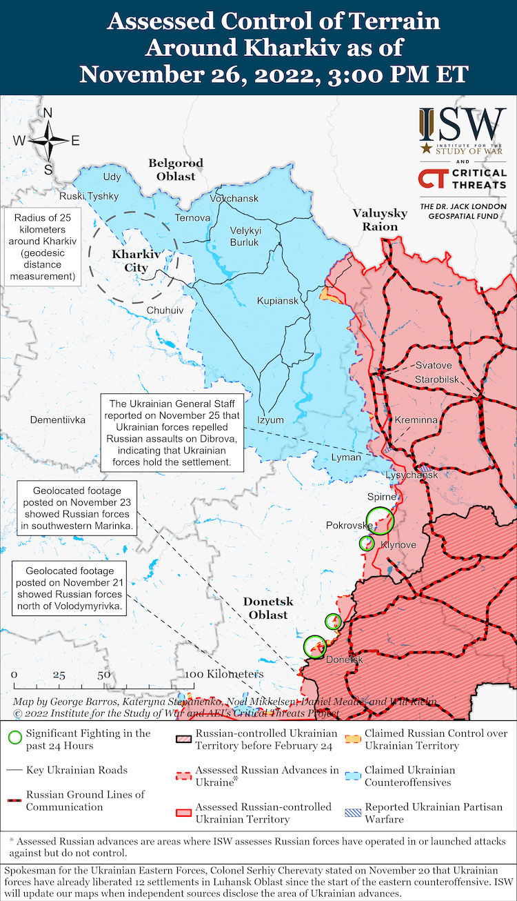 Вместе с этим ВСУ достигают успехов вокруг Сватового и Кременной, а также обороняются от регулярных российских атак на Белогоровку, что в 10 км от Кременной.