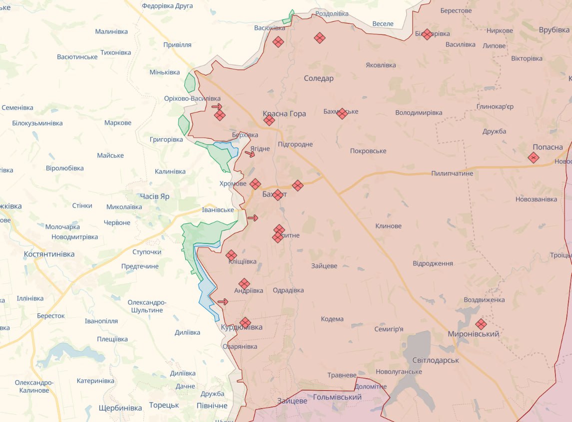 На Бахмутском направлении противник предпринял попытку улучшить тактическое положение, вел наступательные действия в направлениях Ивановскогт и Белой Горы, успеха не имел. Нанес авиационные удары в районе Торецкая. От вражеских артиллерийских обстрелов пострадали районы населенных пунктов Раздоловка, Васюковка, Орехово-Василовка, Ивановское, Белая Гора, Дружба, Торецк, Железное и Северное Донецкой области.