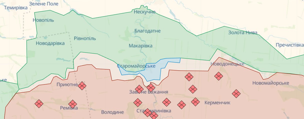 На Марьинском направлении в течение суток наши защитники успешно отразили более 10 атак врага в районе Марьинки. Противник нанес авиационный удар возле Красногоровки Донецкой области. Под артиллерийским и минометным огнем оккупантов находились около 10 населенных пунктов, в том числе Красногоровка, Марьинка, Победа, Константиновка, Елизаветовка Донецкой области.