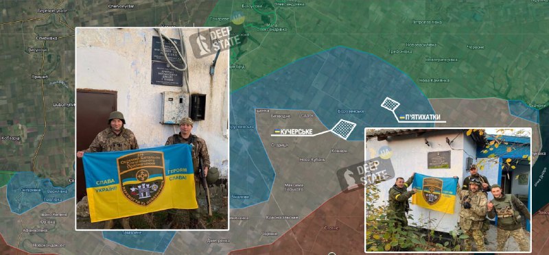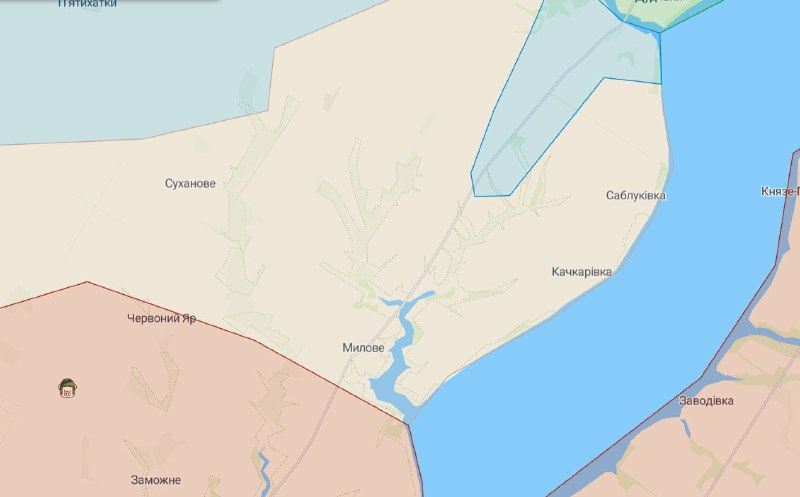 По сообщению DeepStateMap, синяя зона добралась и до Пятихаток с Кучерским.