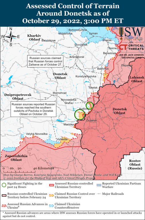 Кроме того, россияне заявили о начале наступление на Угледар и восточную окраину Водяного. Некоторые российские источники утверждали, что российские войска уничтожили первую линию украинской обороны и вошли на юго-восточную окраину Павловки. Но в Генштабе ВСУ и Центре изучения войны пока что не подтвердили информацию об этом. Вместе с тем, российские войска имеют успехи около Авдеевки.