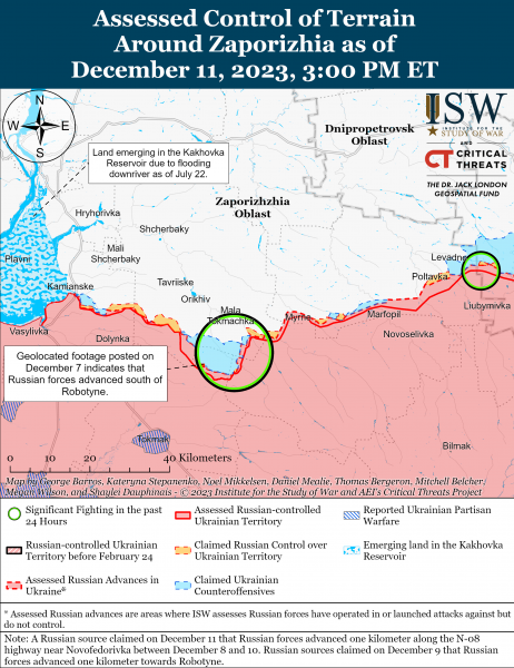 ISW выяснил, что 11 декабря российские войска продлили контратаки в западной части Запорожской области и, как сообщается, продвинулись вперед.