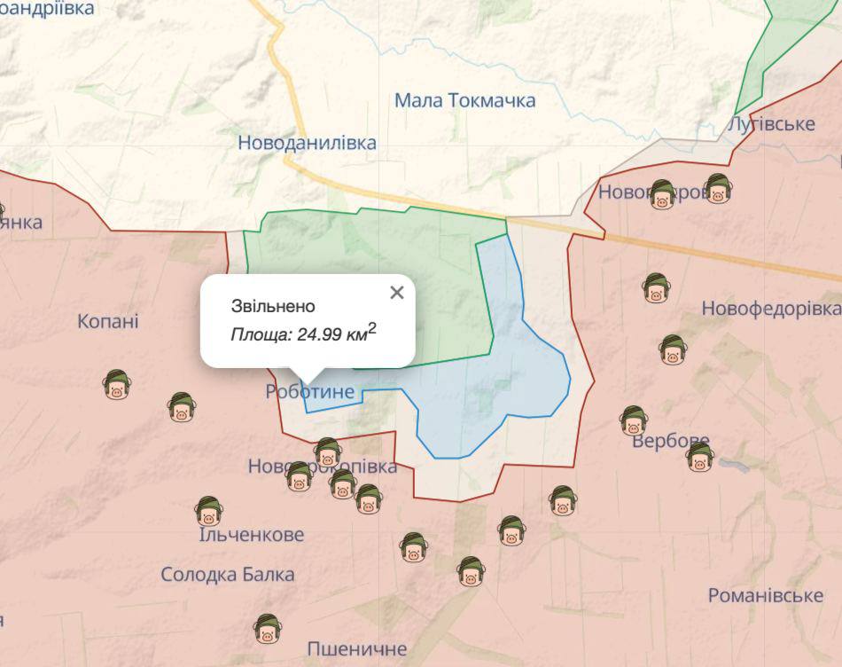 Украинские войска имеют успех в наступлении на южном фронте, они продолжают продвигаться в районе Работиного.